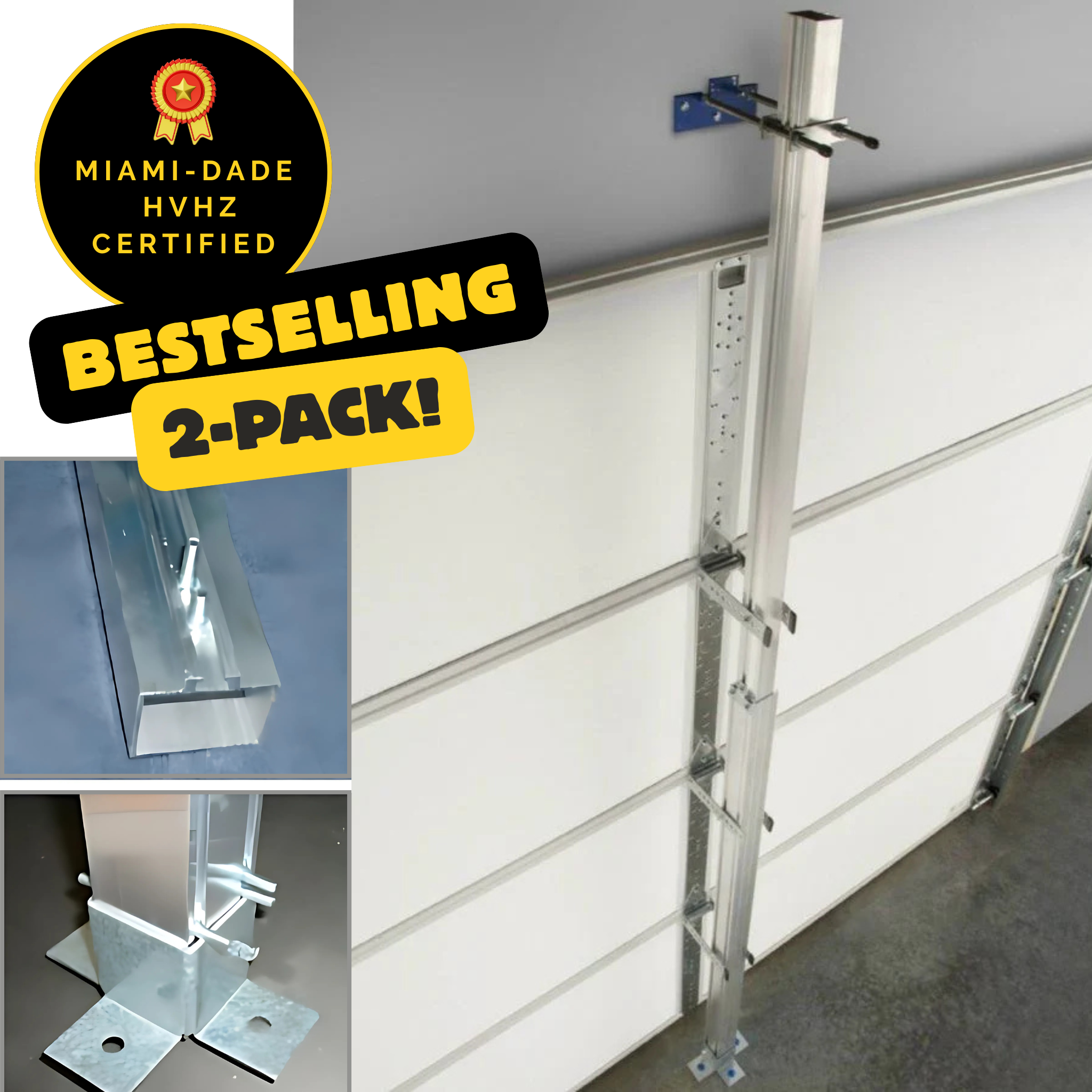 - Anchors through header and into garage floor, attaches to each barrel hinge on the garage door, and adjusts to fit behind horizontal braces up to 5-in deep.